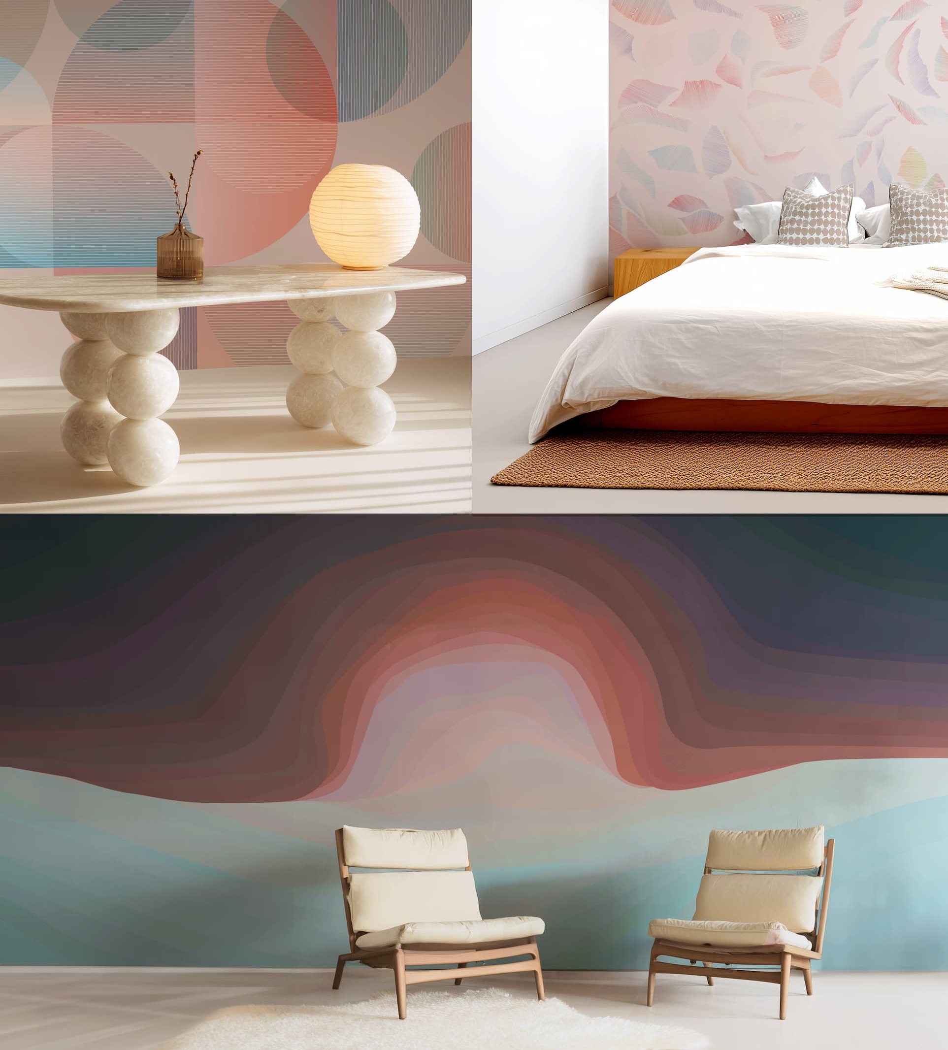 Inspired by moments of movement and change, TRANSITIONS explores soft gradients, fluid forms, and nuanced tonal shifts to create murals that feel atmospheric and grounding. Designed for contract and refined residential spaces, the collection brings continuity and calm, allowing architecture and surface to flow together.