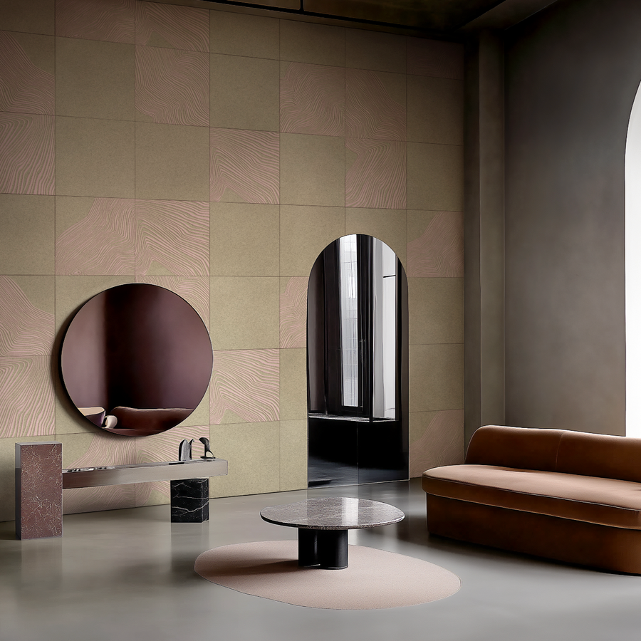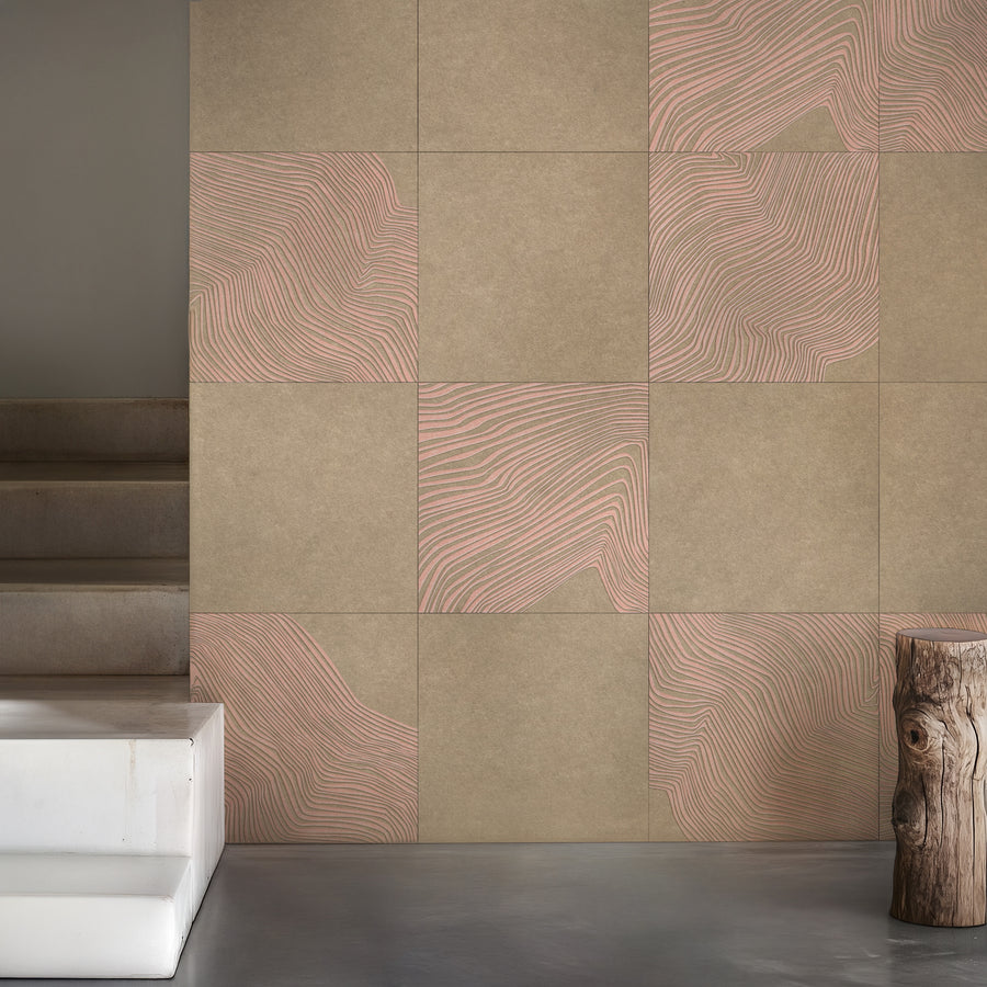 Inspired by fluid brooks and streams in the natural world, these tiles showcase delicate lines embossed and printed within their surface, exuding a sense of subtle movement and rhythm.